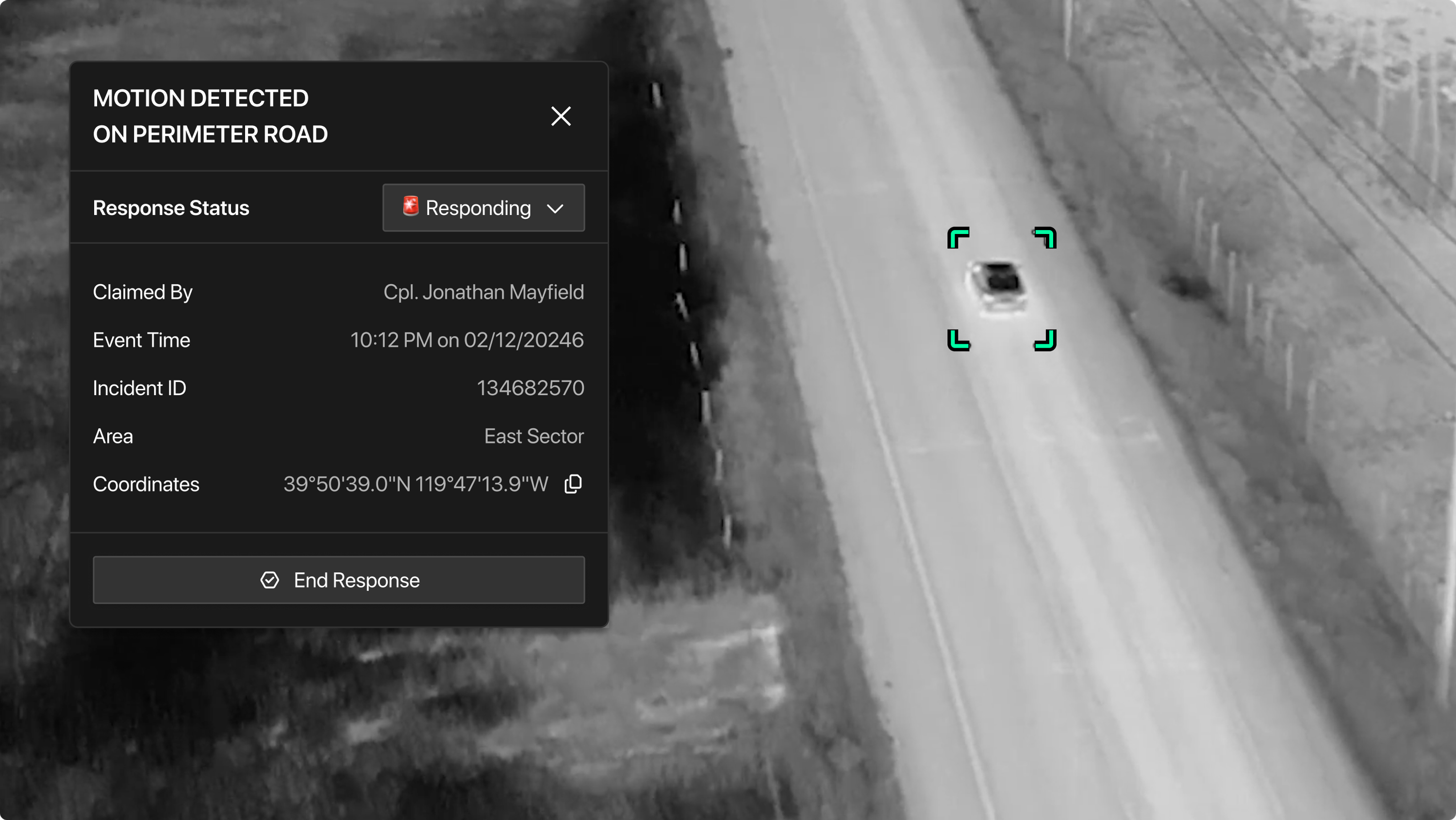 When sensors activate, drones launch immediately and stream live video to the BDOC, allowing teams to confirm false alarms within seconds or confidently escalate verified threats.